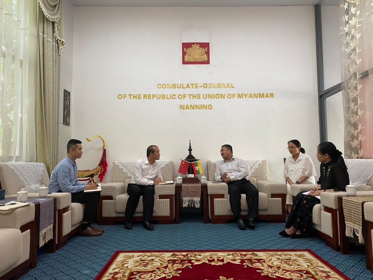202099日下午,廣西金沛教育執(zhí)行董事粟宥朝、國際部主任陸士偉、新媒體中心韋清清一行拜訪了緬甸聯(lián)邦共和國駐南寧總領(lǐng)事館,總領(lǐng)事梭岱南熱情接見了我司的到訪,并就“關(guān)于中緬兩國教育交流與合作”展開了探討。